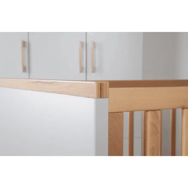 La culla e il lettino di crescita accompagnano il tuo bambino dalla nascita fino all’inizio della scuola. La posizione sdraiata superiore del lettino regolabile in altezza a 3 posizioni è particolarmente facile per voi genitori. Potete facilmente sollevare il vostro bambino dal lettino da questa comoda altezza di sdraio. In seguito, la posizione intermedia è la scelta perfetta, perché le 3 barre di scorrimento rimovibili nell’elemento del lettino permettono al bambino di entrare e uscire in modo sicuro. La posizione più bassa del lettino regolabile in altezza è destinata al letto Junior . Quando il tuo bambino è più grande, il lettino combinato può essere convertito in un letto Junior utilizzando le sponde di conversione che sono disponibili separatamente. La testiera e la pediera del lettino combinato possono essere divise. Quando si converte in un letto Junior , le due metà superiori della testiera e della pediera vengono utilizzate e creano un nuovo look nella stanza dei bambini. Il lettino combinato “Tobi” può essere utilizzato fino a quando il bambino ha 7 anni (o fino a un peso corporeo di 50 kg).