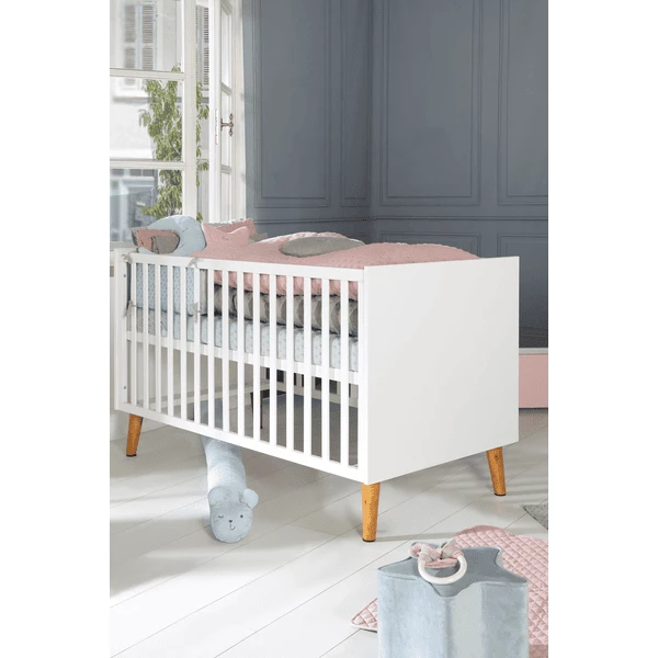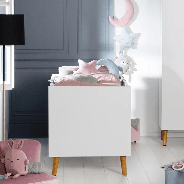 Il lettino combinato ‘Mick’ può essere utilizzato fino a quando il bambino ha 7 anni (o fino a un peso corporeo di 50 kg). Il letto per bambini roba e Junior senza viti visibili nella parte anteriore ha una superficie di sdraio di 70 x 140 cm. Se vuoi trasformare il lettino in un letto a baldacchino, i nostri set da 4 pezzi per lettino composti da cuscino, coperta, baldacchino e nido sono ideali.