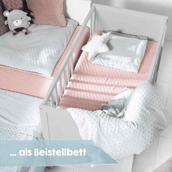 Con l’aggiunta di barre di scorrimento, puoi trasformare il letto a scomparsa in una culla per il tuo bambino. In seguito, potrete permettere al vostro bambino di entrare e uscire dal lettino in modo sicuro rimuovendo le barre di scorrimento. Il letto a scomparsa roba con rete a doghe ha una superficie di sdraio di 60 x 120 cm.