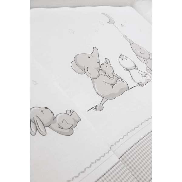Al centro coniglietti, orsetti ed elefanti si raccontano una storia della buona notte guardando verso il cielo stellato.