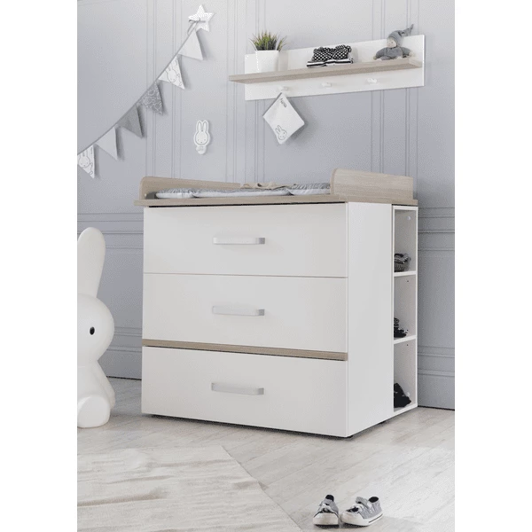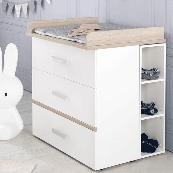 e i vestiti dei bambini. Il fasciatoio in bianco con pannello superiore e