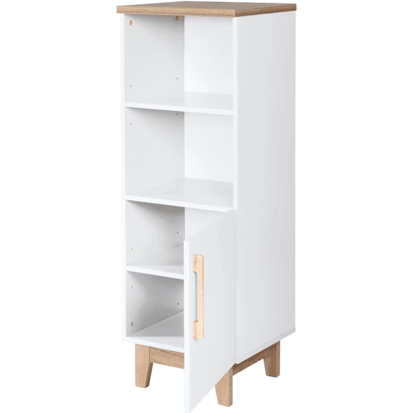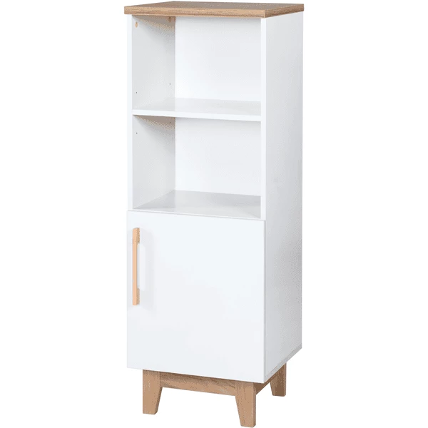 Dietro la porta, nella parte inferiore dello scaffale, c’è spazio per calze, biancheria intima o libri, ad esempio. La tecnologia soft close integrata permette alla porta di chiudersi dolcemente e silenziosamente. Come caratteristica speciale Design -Alto light , il ripiano sottile ha un aspetto fluttuante del pannello superiore. Il pratico ripiano in piedi può essere perfettamente allungato con altri mobili per neonati e bambini della serie “Finn” per creare una stanza per neonati o per bambini completamente arredata con mobili di sistema che crescono con il bambino. Il ripiano in piedi roba con struttura di base e pannello superiore in “quercia dorata” vi servirà bene per molti anni, perché taglia anche una bella figura come un unico mobile in piedi da solo. Quando il vostro bambino è più grande, può essere utilizzato anche come scaffale per libri o decorazioni in soggiorno o nella stanza degli adolescenti.