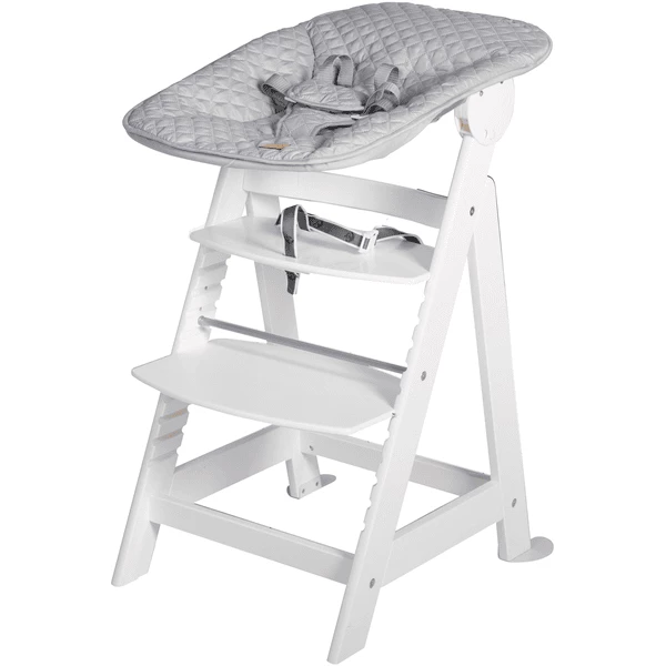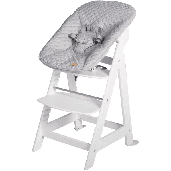 Il seggiolone con funzione reclinabile e sistema di cinture a 5 punti cresce con il bambino e offre così una lunga durata. Indipendentemente dall’altezza del tavolo, il seggiolone evolutivo Born Up permette al bambino di partecipare attivamente alla vita familiare durante i pasti. Il livello superiore del seggiolone Born Up è destinato ai bambini piccoli. Sedile e poggiapiedi sono regolabili in varie altezze. Il seggiolone con sistema di cinture a 3 punti è stato sviluppato in Germania secondo l’attuale norma DIN EN 14988:2017. L’attacco con sistema di cinture a 5 punti è stato sviluppato in Germania secondo l’attuale norma EN 12790:2009. Materiali testati e certificati. Regolarmente testati dal produttore.