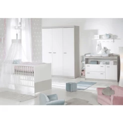 Dietro le sue tre ante con maniglie in plastica di alta qualità, l’armadio roba Julia offre molto spazio di stoccaggio con un appendiabiti e 5 ripiani nella stanza dei bambini o del bambino. Grazie alla sua altezza di quasi 2 m, l’armadio cresce con il bambino fino all’età adulta e può essere utilizzato anche come armadio per la camera dei giovani.