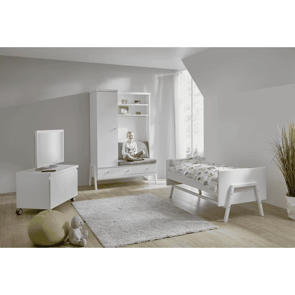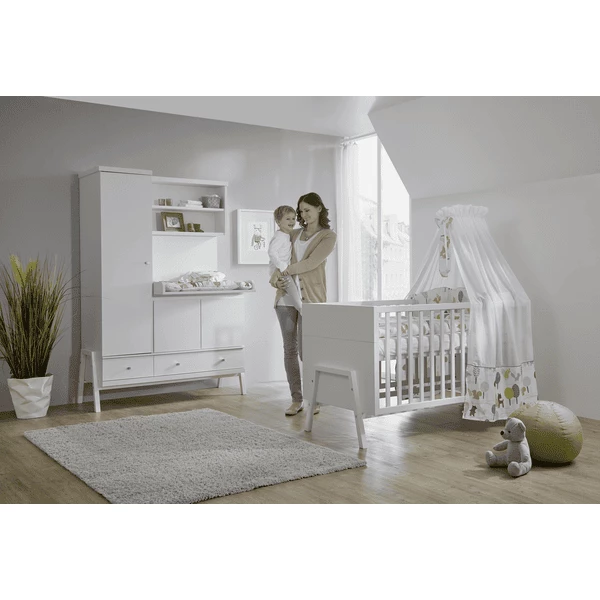 Con base in legno laccato bianco. Mobile fasciatoio in coordinato, disponibile separatamente. Stile moderno, semplice ed essenziale.