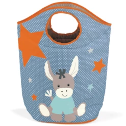 Pratico cestino portaoggetti pieghevole con il motivo dell’asino Emmi. Piegate le due maniglie e avrete un’apertura circolare per gettare il bucato. Quando il cesto della biancheria è pieno, può essere facilmente portato via. Se non è necessario, è possibile ripiegarlo per risparmiare spazio. Il cestino è ottimo anche per riporre i peluche.