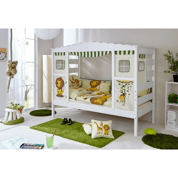 Le tende scatenano la fantasia del tuo bambino, fornendogli spunti per vivere sempre nuove avventure nella sua cameretta. Realizzato in legno massiccio e vernice ad acqua.