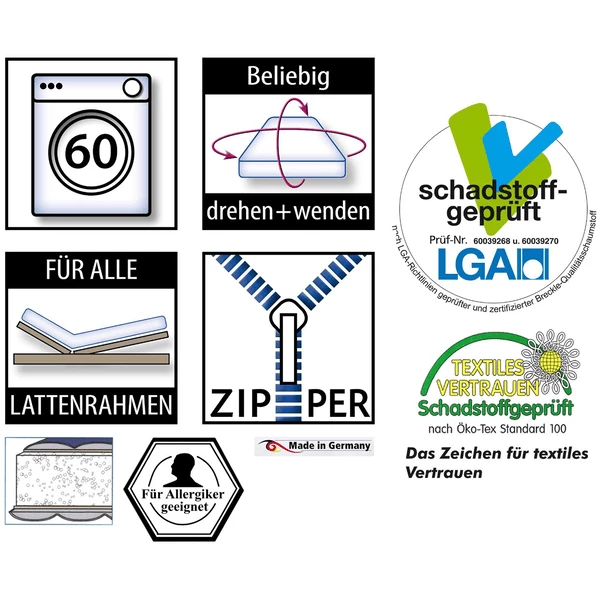 • Il materasso è stato testato per le sostanze nocive con il test n.