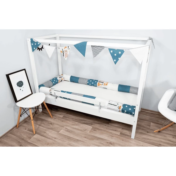 Il grazioso serpente a nido con diversi motivi è lungo 400 centimetri e spesso 13 centimetri. Il morbido tessuto esterno in 100% cotone certificato ÖkoTex è dotato di un’imbottitura silenziosa in poliestere ÖkoTex. Il rotolo del lettino per bambini è lavabile in lavatrice a 30°C.