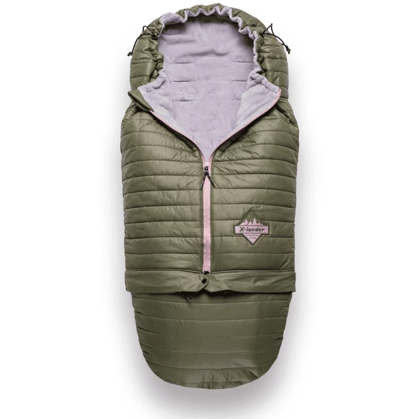 - Grazie alle cerniere separate e completamente apribili, il sacco a pelo può essere aperto completamente e il bambino può essere messo nella carrozzina ancora più facilmente.