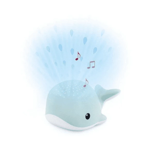 4 programmi di proiezione tra cui scegliere: Blu, Orange , Verde e colori cangianti. Wally suona 3 melodie: ninnananne, suoni dell’oceano e suoni del cuore. La luce si spegne automaticamente dopo circa 30 minuti e la musica dopo circa 15 minuti. Se lo si desidera, il sensore sonoro fa sì che Wally si riaccenda quando il bambino piange. È possibile scegliere tra 2 impostazioni di volume.
